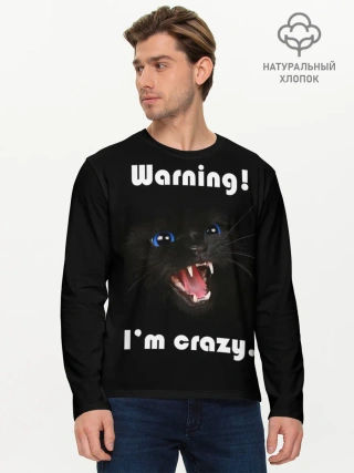 Мужской лонгслив базовый / Осторожно! Я крэйзи.