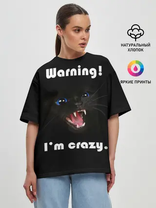 Женская футболка оверсайз / Осторожно! Я крэйзи.