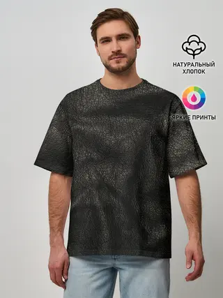 Мужская футболка оверсайз / Черная кожа