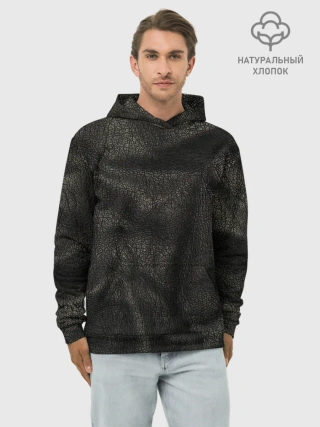 Худи мужской база хлопок / Черная кожа