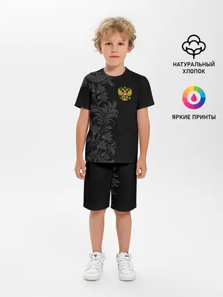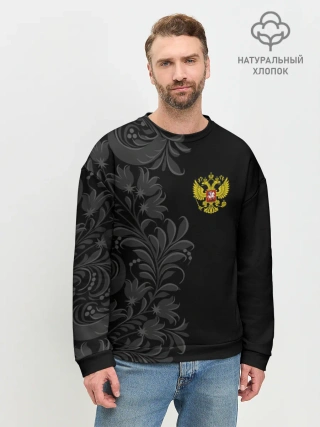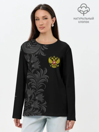 Лонгслив женский. Хлопок / Герб России и Орнамент