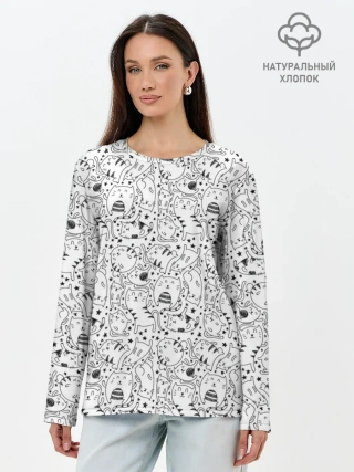 Лонгслив женский. Хлопок / котики и кошки