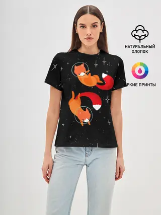 Женская футболка оверсайз / Лисички в Космосе