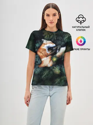 Женская футболка оверсайз / Лисичка в Лесу