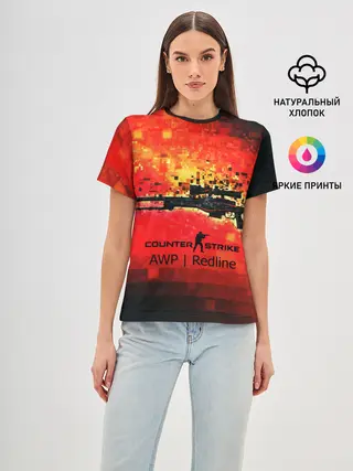 Женская футболка оверсайз / cs go:AWP:Red Line