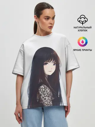 Женская футболка оверсайз / Красивая аниме девушка