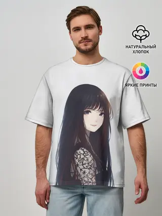 Мужская футболка оверсайз / Красивая аниме девушка
