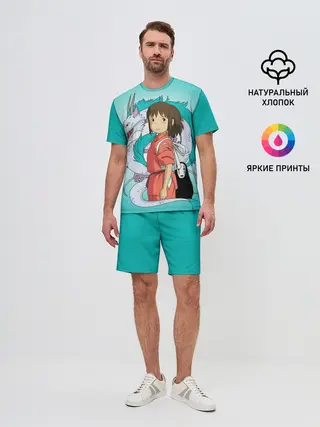 Мужской костюм с шортами / Тихиро и Хаку зеленый фон