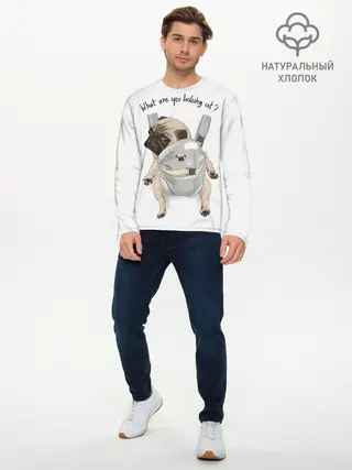 Мужской лонгслив базовый / Мопс в рюкзаке