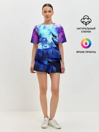 Женская пижама с шортами / Ночь Волк Луна