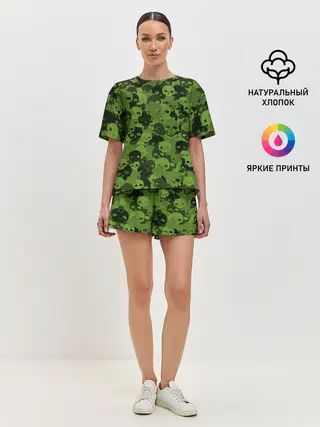 Женская пижама с шортами / Камуфляж Черепа | Текстура