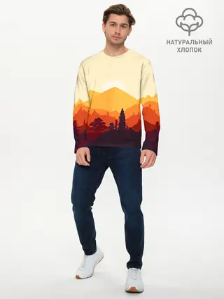 Мужской лонгслив базовый / Горы закат пейзаж лиса арт