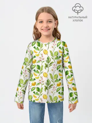 Мужской лонгслив базовый / Летний узор лимон ветки листья