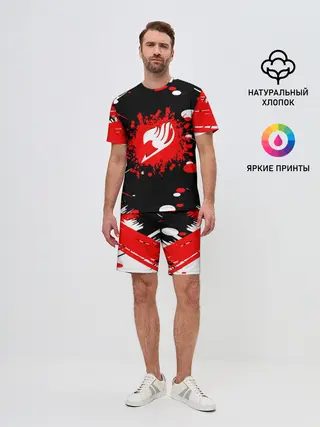 Мужской костюм с шортами / Хвост Феи красно-черная геометрия