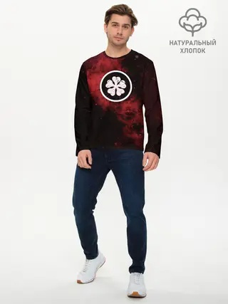 Мужской лонгслив базовый / Эмблема Черного клевера на космическом фоне
