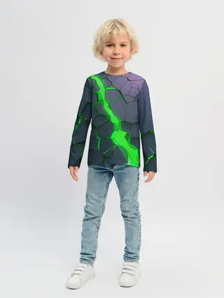 Детский лонгслив / ЗЕЛЕНЫЙ РАЗЛОМ | 3Д РАЗЛОМ
