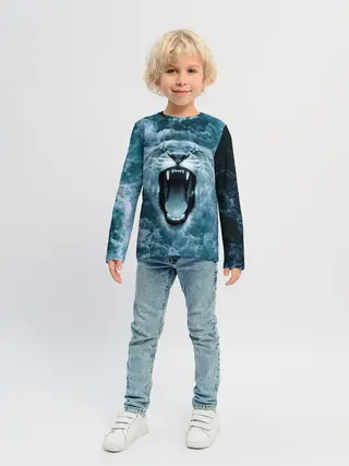 Мужской лонгслив базовый / Львица в бушующих волнах