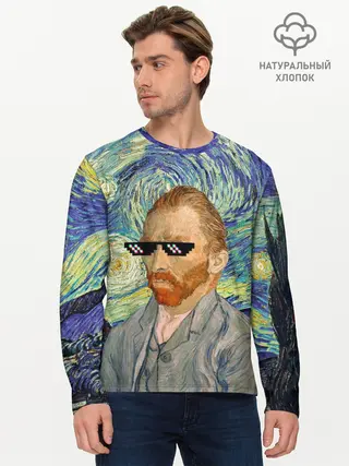 Мужской лонгслив базовый / Ван Гог - Deal with it