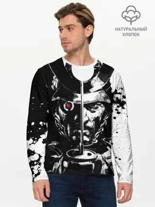 Мужской лонгслив базовый / Самурай | ЧБ | Лого