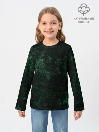 Мужской лонгслив базовый / Темно-зеленый мраморный узор