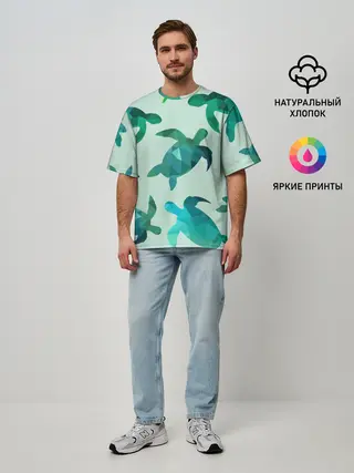 Мужская футболка оверсайз / Абстракция Черепахи Полигон