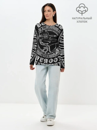 Лонгслив женский. Хлопок / Барбер Каллиграфия