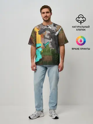 Мужская футболка оверсайз / Стив сражается с Эндердраконом