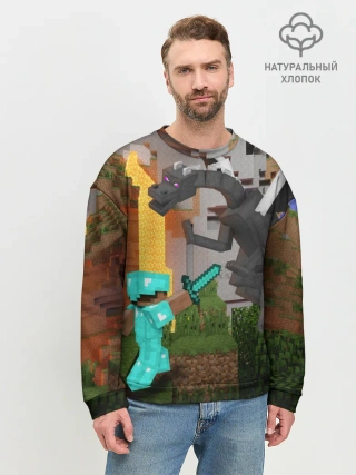 Мужской свитшот базовый / Стив сражается с Эндердраконом