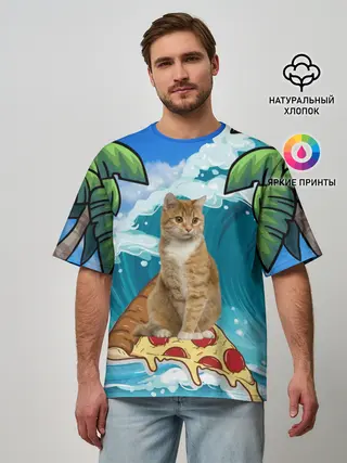 Мужская футболка оверсайз / Сёрфинг на Пицце