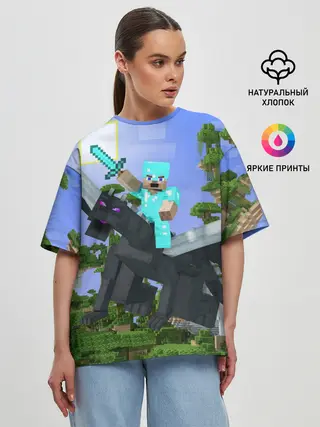 Женская футболка оверсайз / Стив среди парящих островов.