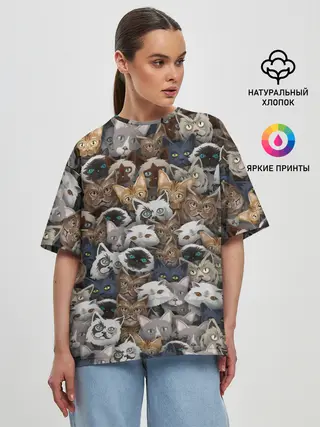 Женская футболка оверсайз / Коты разных пород