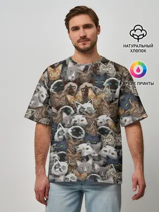 Мужская футболка оверсайз / Коты разных пород