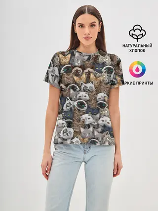 Женская базовая футболка / Коты разных пород