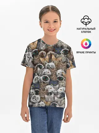 Детская базовая футболка / Коты разных пород