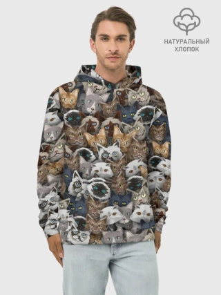 Худи мужской база хлопок / Коты разных пород