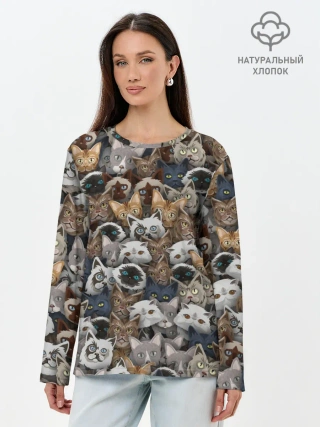 Лонгслив женский. Хлопок / Коты разных пород