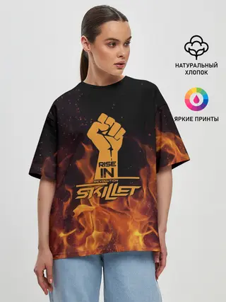 Женская футболка оверсайз / Rise in revolution - Skillet