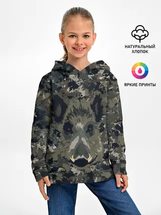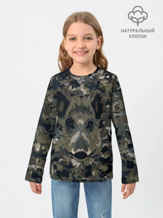 Лонгслив женский. Хлопок / Камуфляж с кабаном