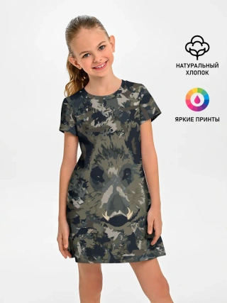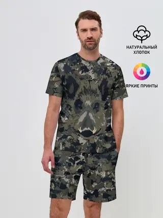 Мужская футболка оверсайз / Камуфляж с кабаном