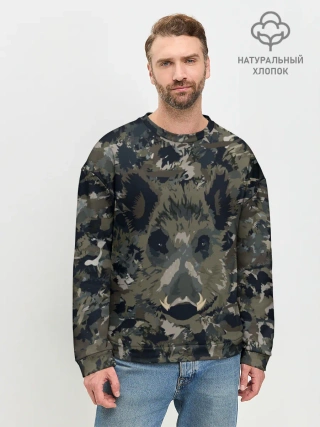 Мужской лонгслив базовый / Камуфляж с кабаном