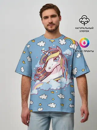 Мужская футболка оверсайз / Радужный Единорог