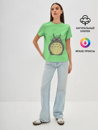 Женская базовая футболка / Тоторо под листочком
