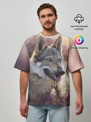 Мужская футболка оверсайз / Волк