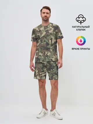 Мужской костюм с шортами / Лесной камуфляж с бутылками
