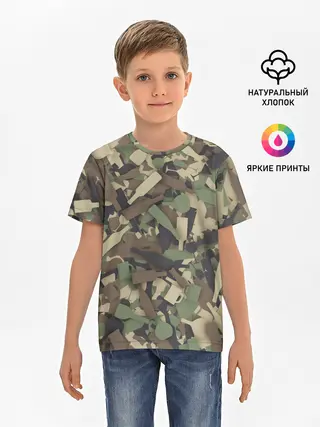 Детская базовая футболка / Лесной камуфляж с бутылками