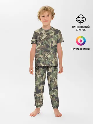 Детская пижама с брюками / Лесной камуфляж с бутылками