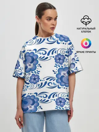 Женская футболка оверсайз / Гжель