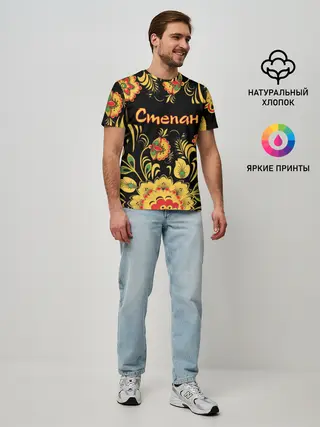 Мужская футболка оверсайз / Степан, роспись под хохлому