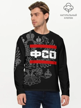 Мужской лонгслив базовый / ФСО, белый герб РФ