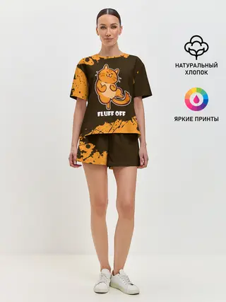 Женская пижама с шортами / КОТ - FLUFF OFF / Отвали